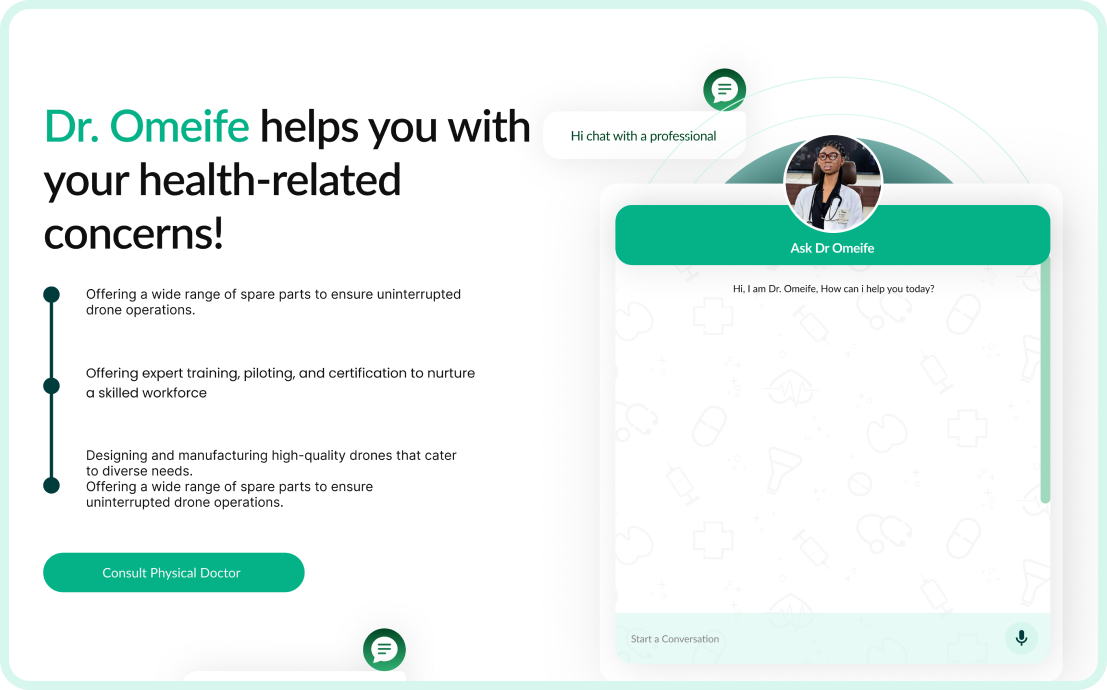Our platform blends artificial intelligence with expert medical care to deliver precise, fast, and efficient healthcare services across Nigeria. Whether you're in Lagos, Abuja, Kano, or anywhere across Nigeria, we ensure that you receive the best healthcare remotely, at your convenience.